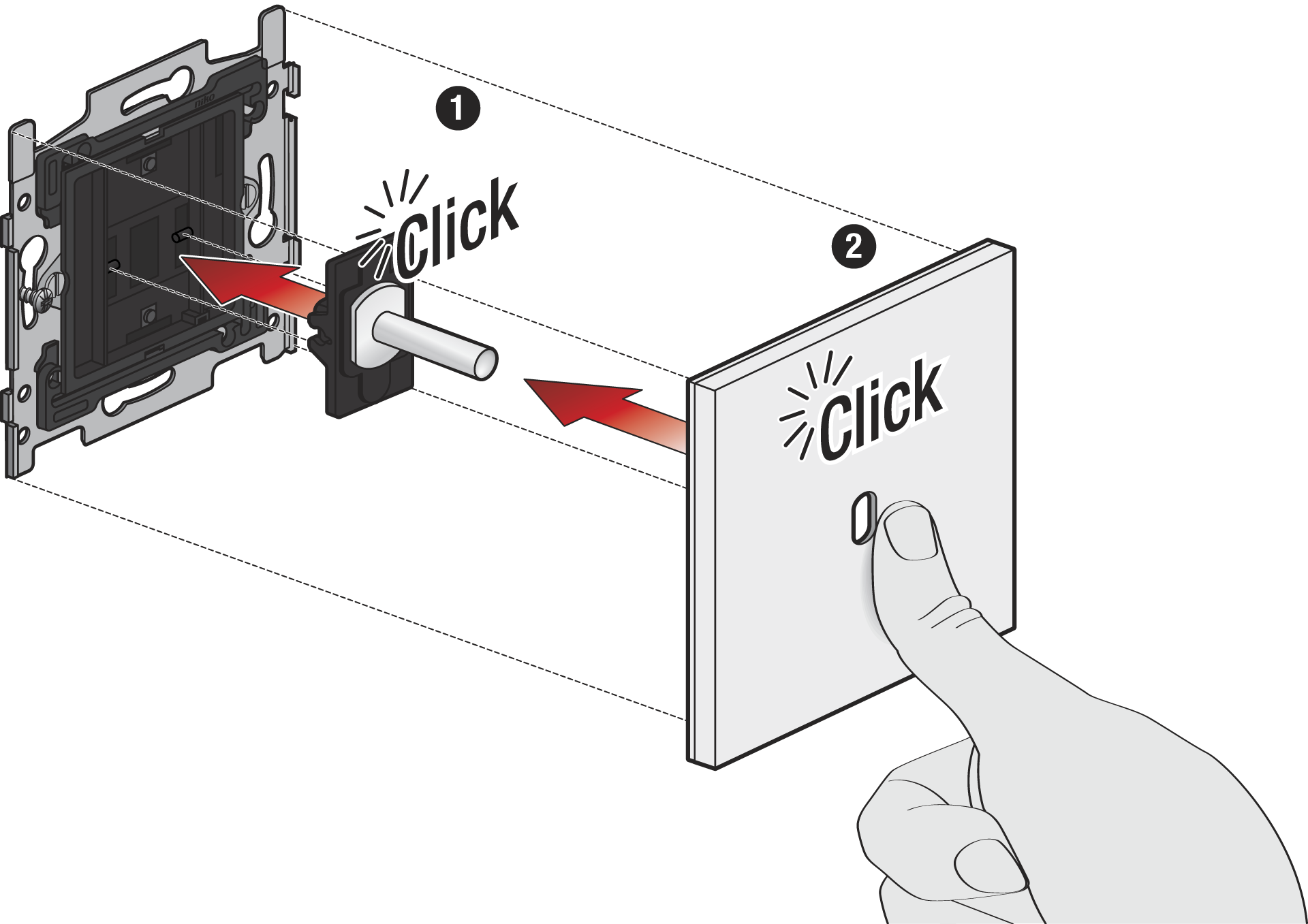 Click the Rocker or Toggle part(s) onto the base before you click the faceplate into place.