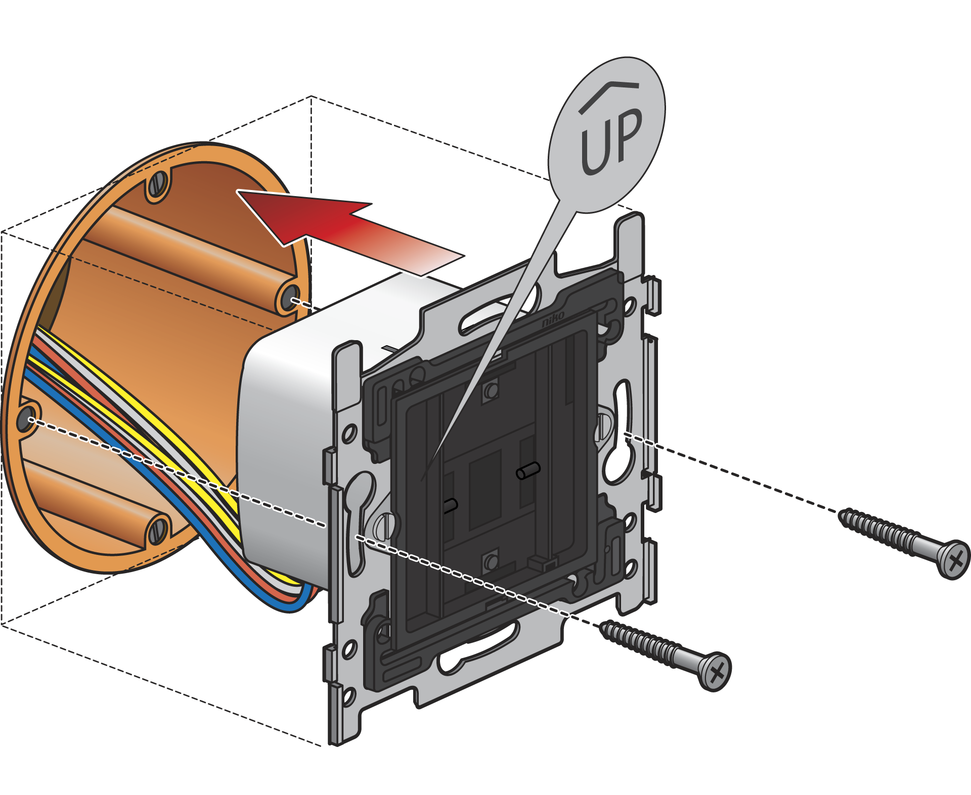 Mount the base in a flush-mounting box with a depth of at least 40 mm.