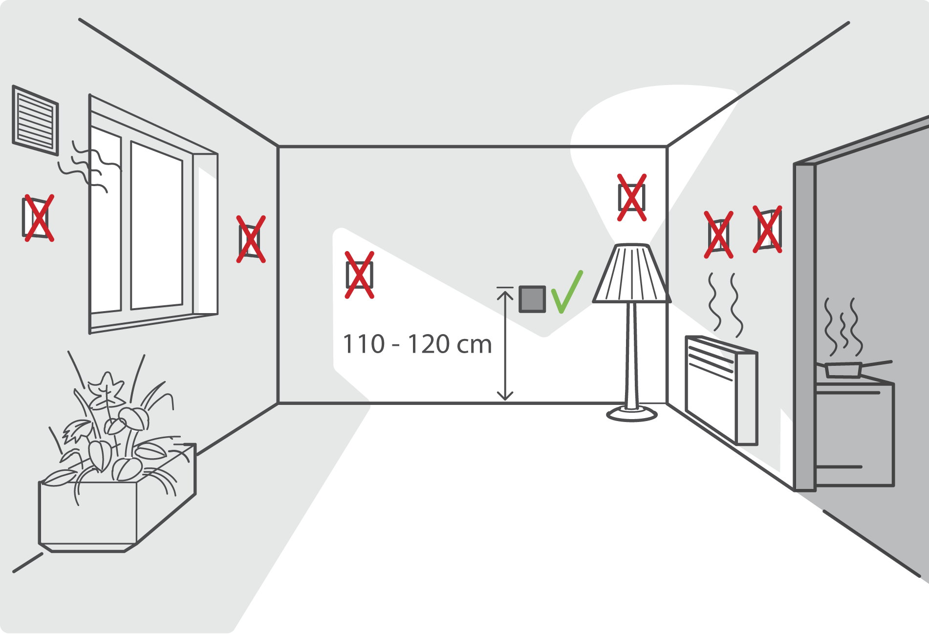 To enable heating/cooling zone control, make sure the room temperature can be measured precisely by eliminating as many factors as possible that may inhibit the thermostat’s ability to perform accurate temperature control.