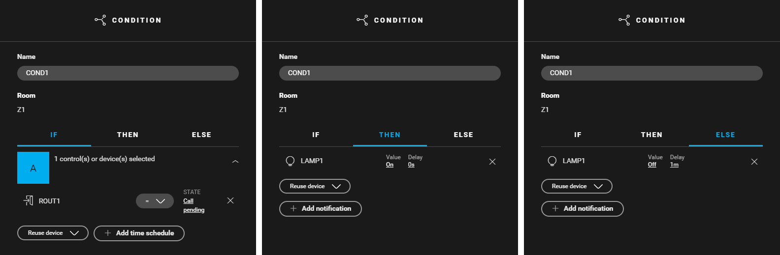 - ELSE LAMP1: Value = off, Delay = 1 m