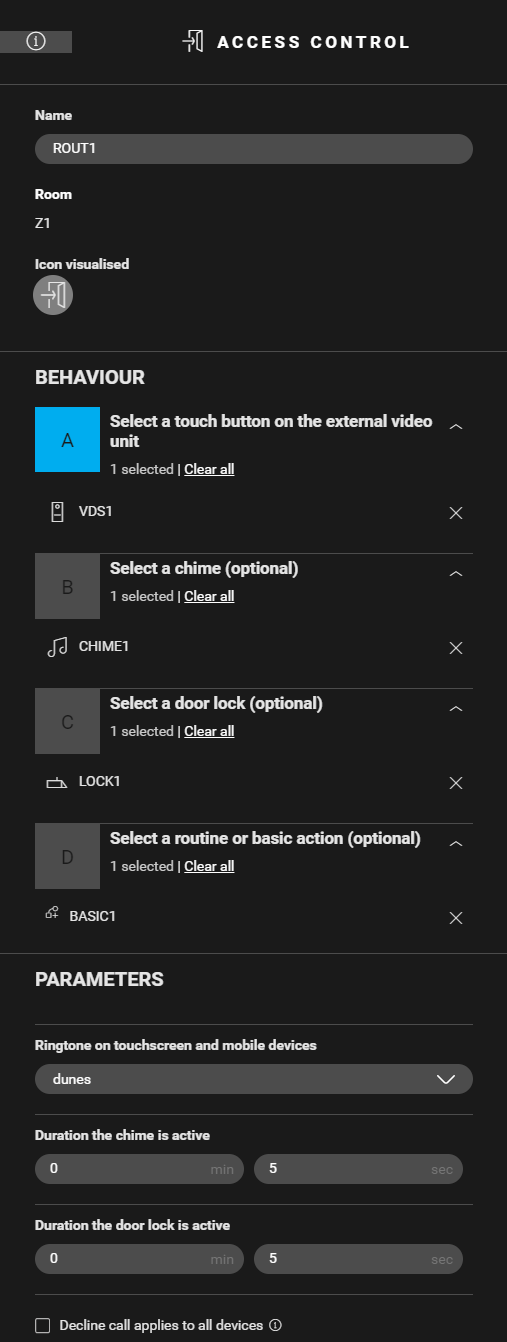 - (optional) In the parameters, select a different ringtone and the duration of both the chime and the door lock.