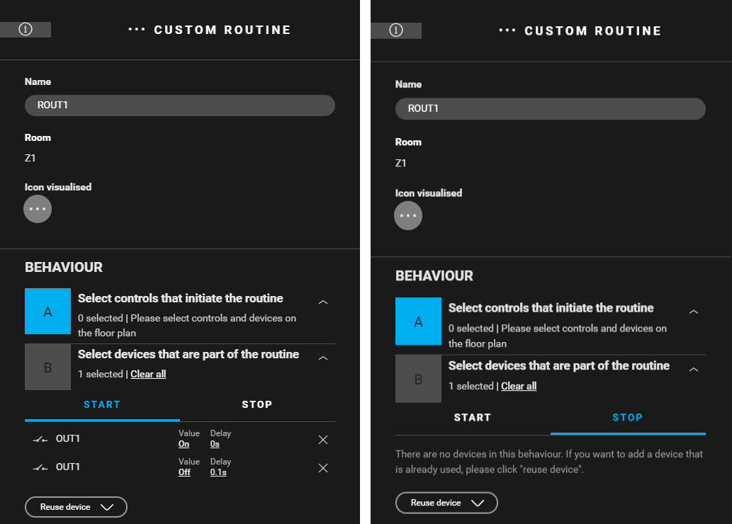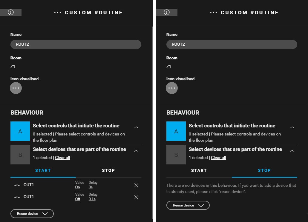 - Devices that are part of the routine: OUT1