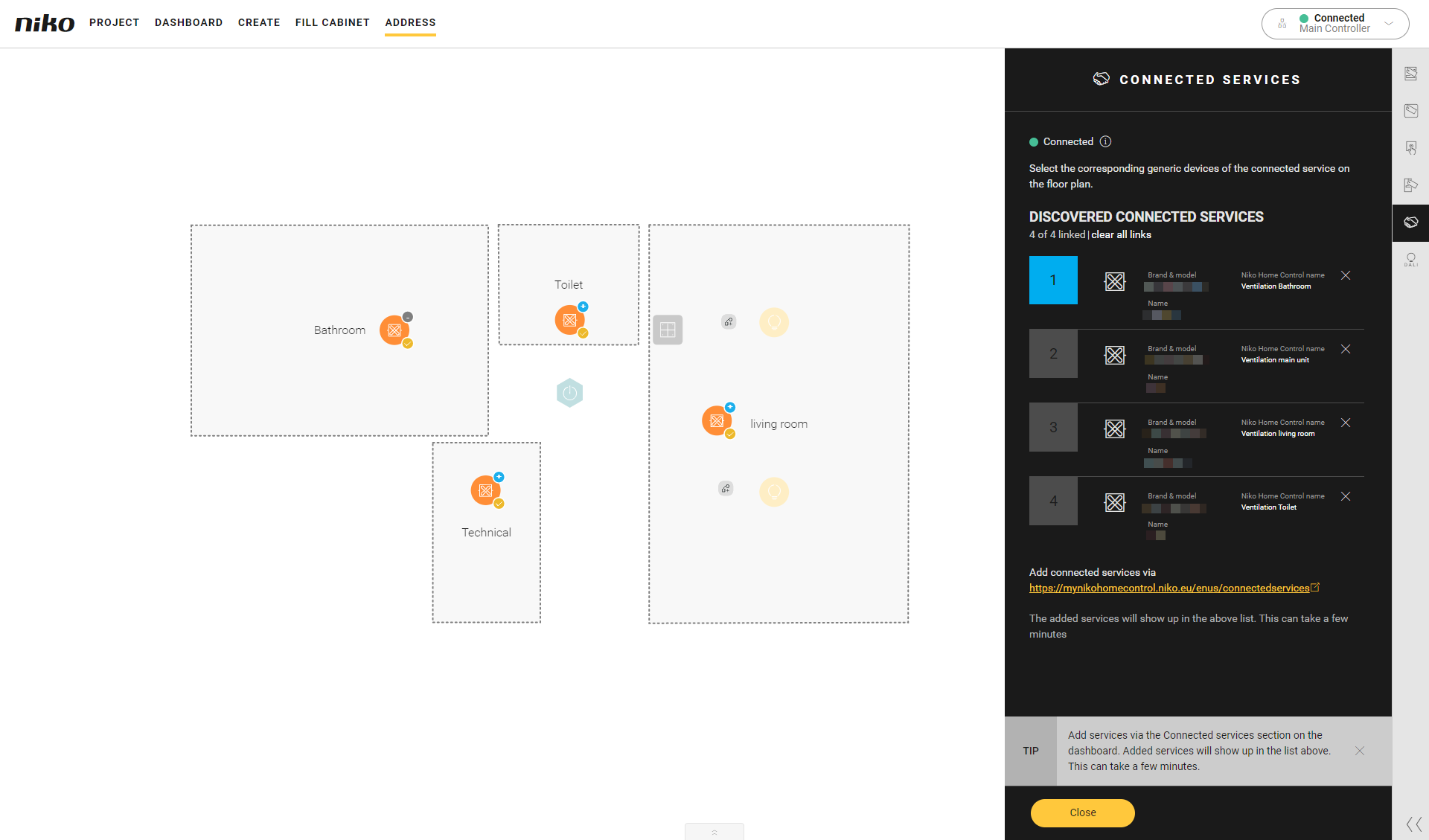All partner devices are in place and connected to the local network of your Niko Home Control installation.