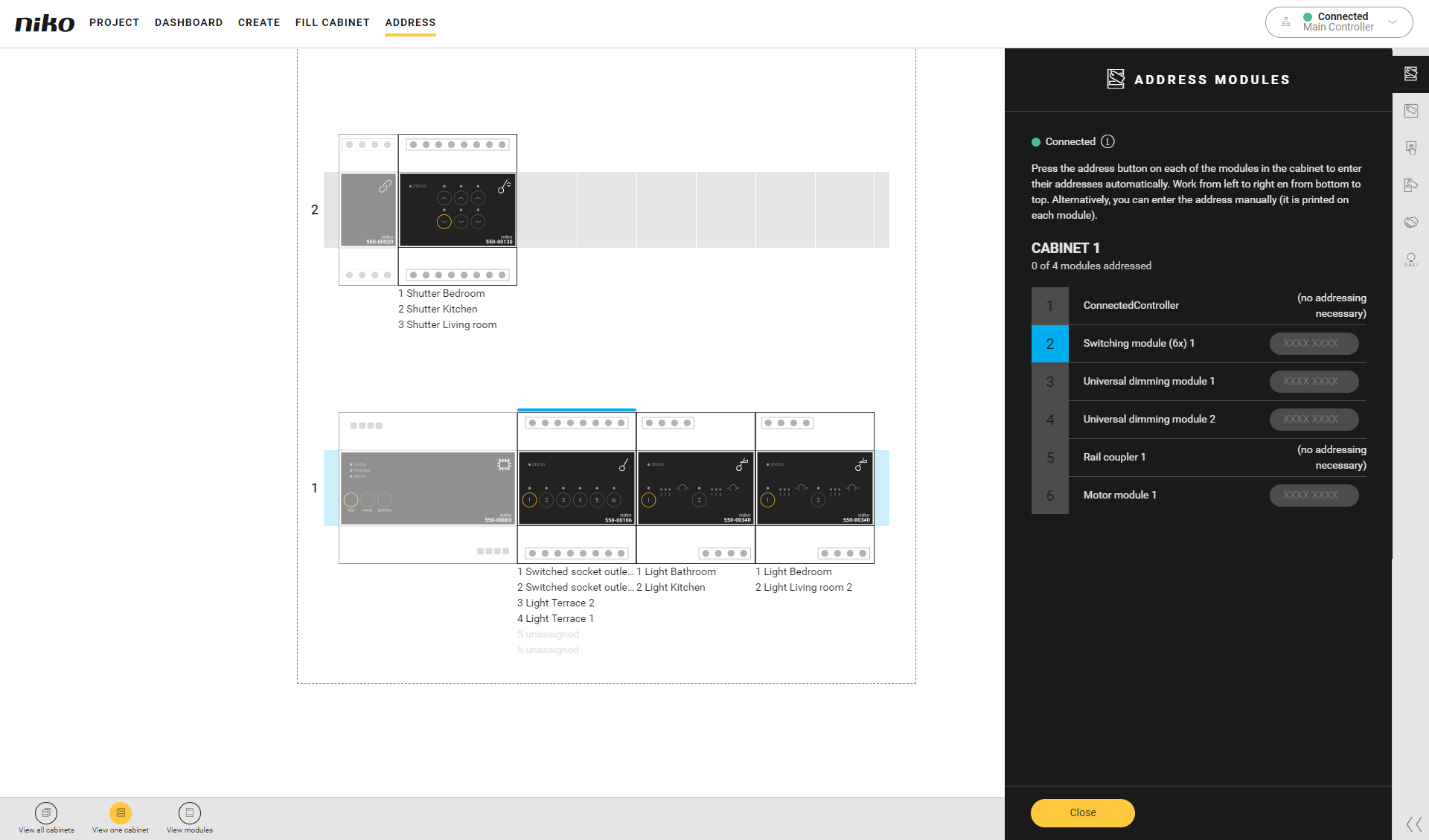 Result:The Address modules pane appears and shows an overview of all modules in the electric cabinet(s).