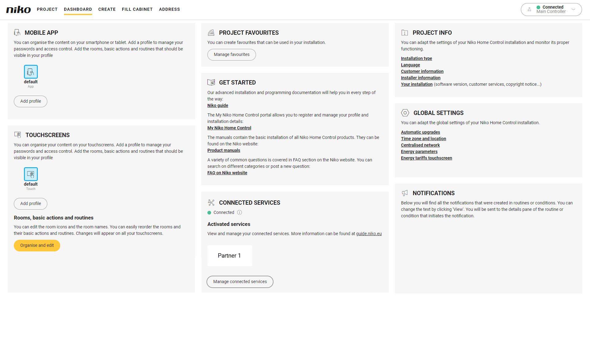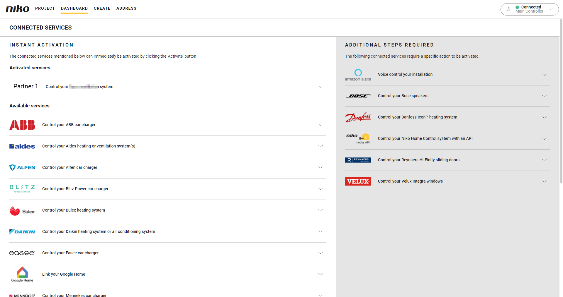 Click on Manage connected services. This is where you manage all the services linked to your installation, including those from partner brands.