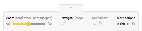 You can find the Zoom function at the bottom of the screen in the selection bar. The selection bar is hidden by default. Click the arrows to show or hide the selection bar.
