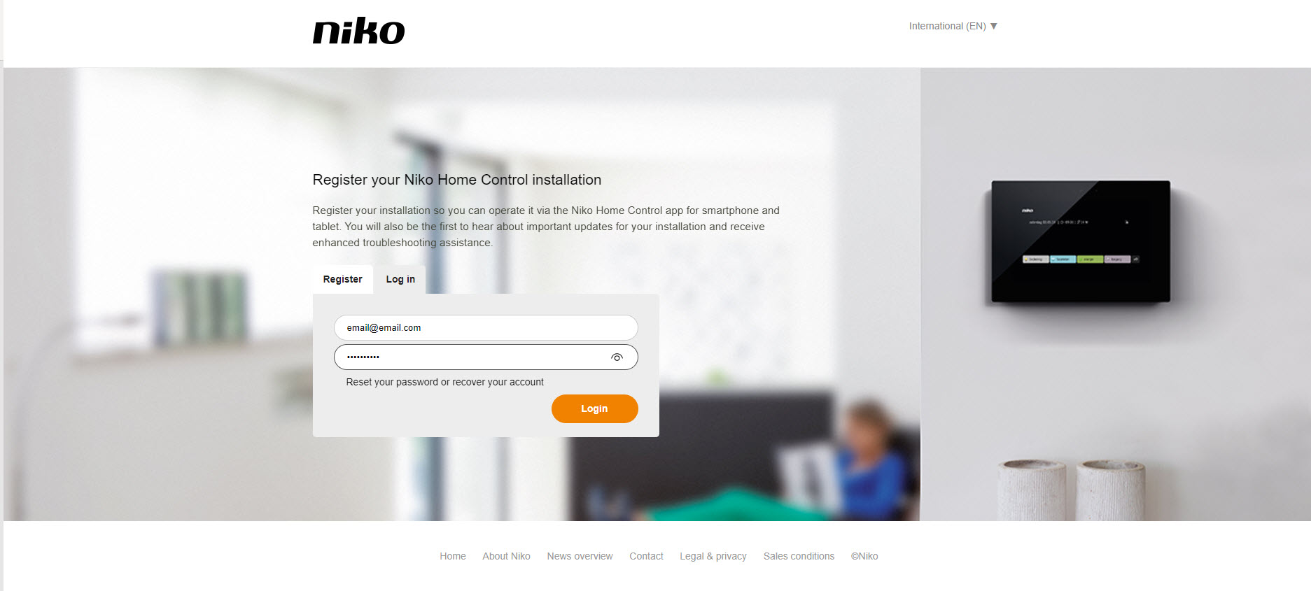 - STEP 2: Enter the email address and password that you use to log in to your Niko Home Control application on your smartphone.