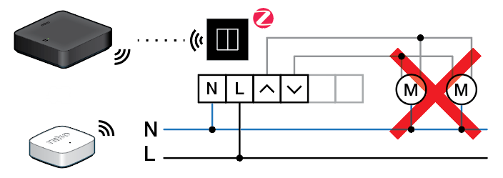 - La commande de moteur connectée commute uniquement le fil L vers son contact de pôle. Le fil N ne sera pas commuté