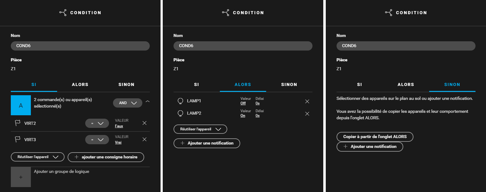 - Créez une condition (COND6) pour activer tout l'éclairage. Utilisez la logique suivante :