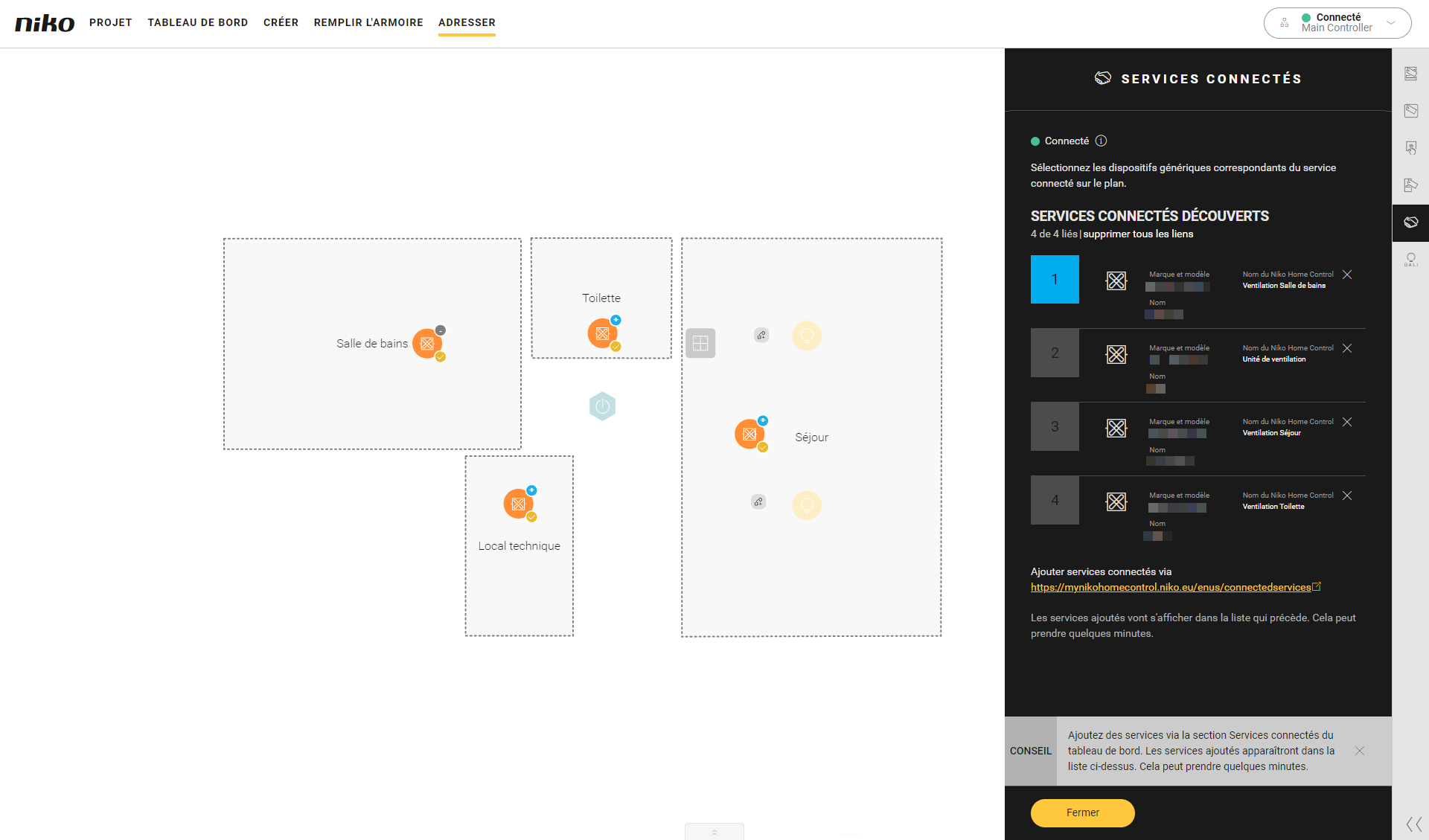 Tous les appareils partenaires sont en place et connectés au réseau local de votre installation Niko Home Control.