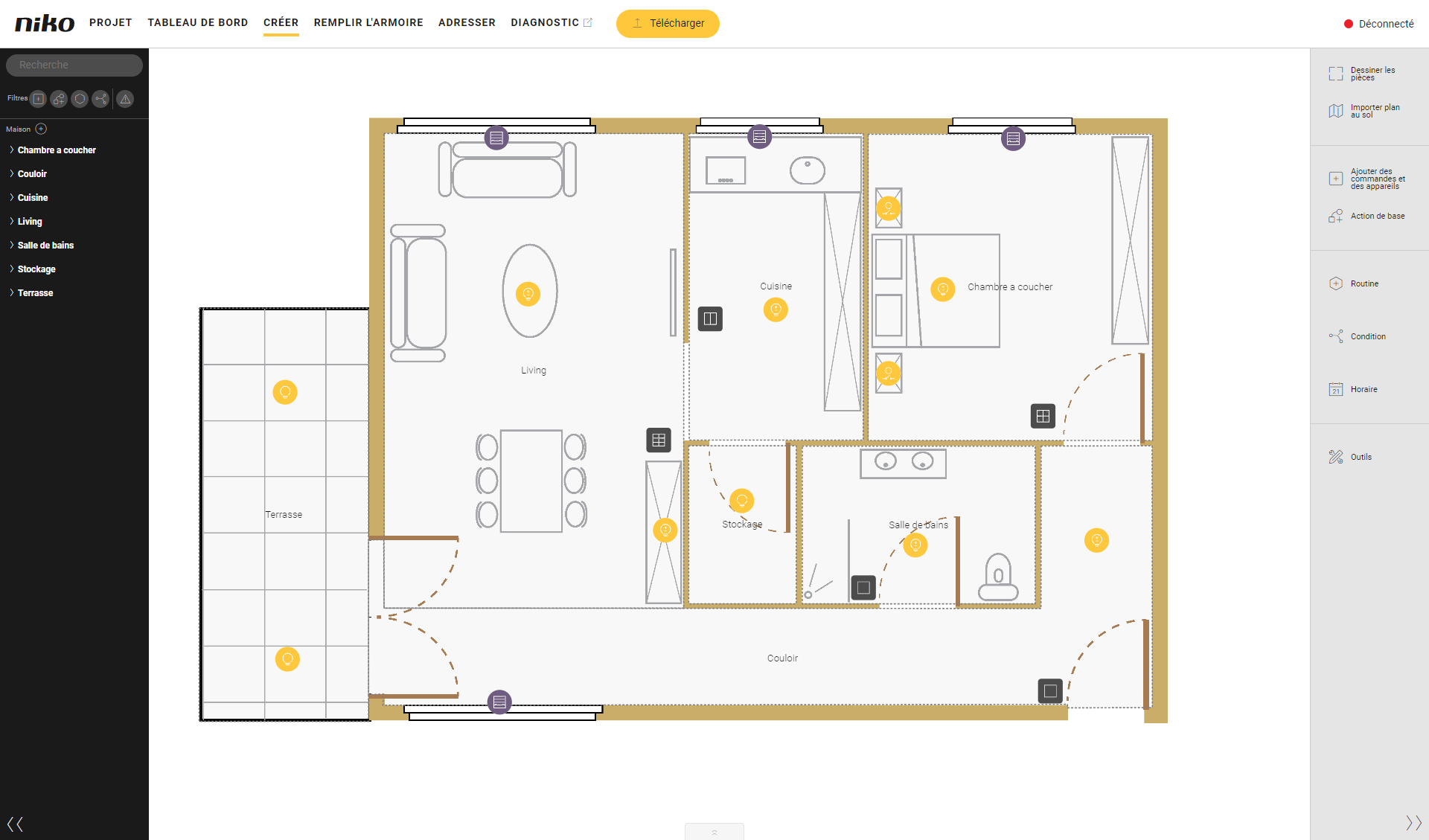 Sur le plan, tous les appareils et commandes éligibles obtiennent un signe plus.