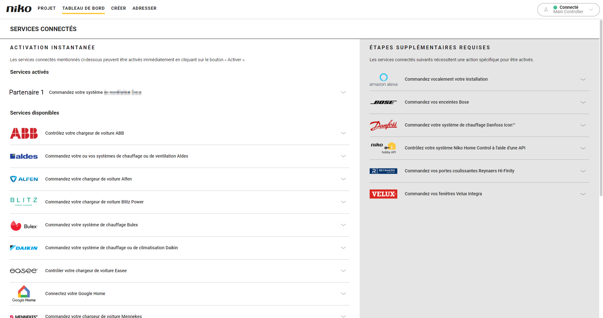Dans la rubrique Services activés, cliquez sur la flèche à côté du service connecté que vous souhaitez dissocier de votre installation.