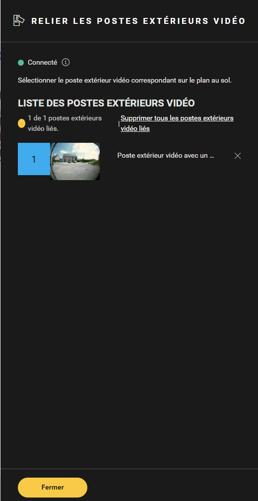 Le volet des postes extérieurs vidéo se déploit et affiche les appareils vidéo trouvés dans l'installation, avec l'image de la caméra correspondante.