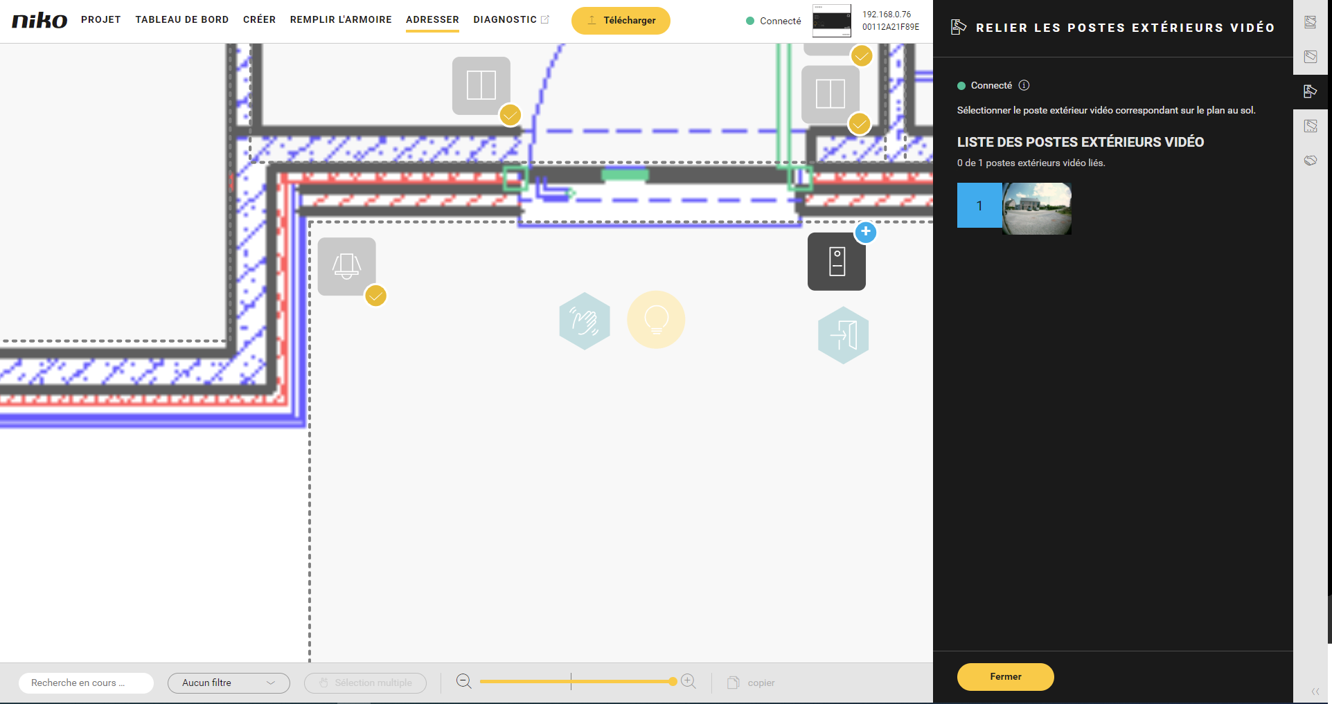 Etape 3: Clicker sur l'icone "+" du poste extérieur dans le plan pour lier celui-co. Veiller à respecter l'ordre listé dans le logiciel de configuration.
