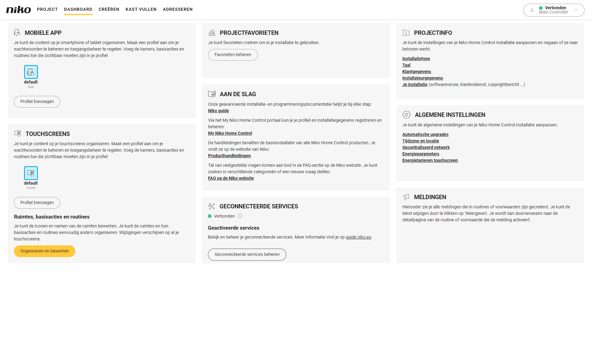 Je Niko Home Control installatie en, in sommige gevallen, de geconnecteerde service die je wilt koppelen zijn online.