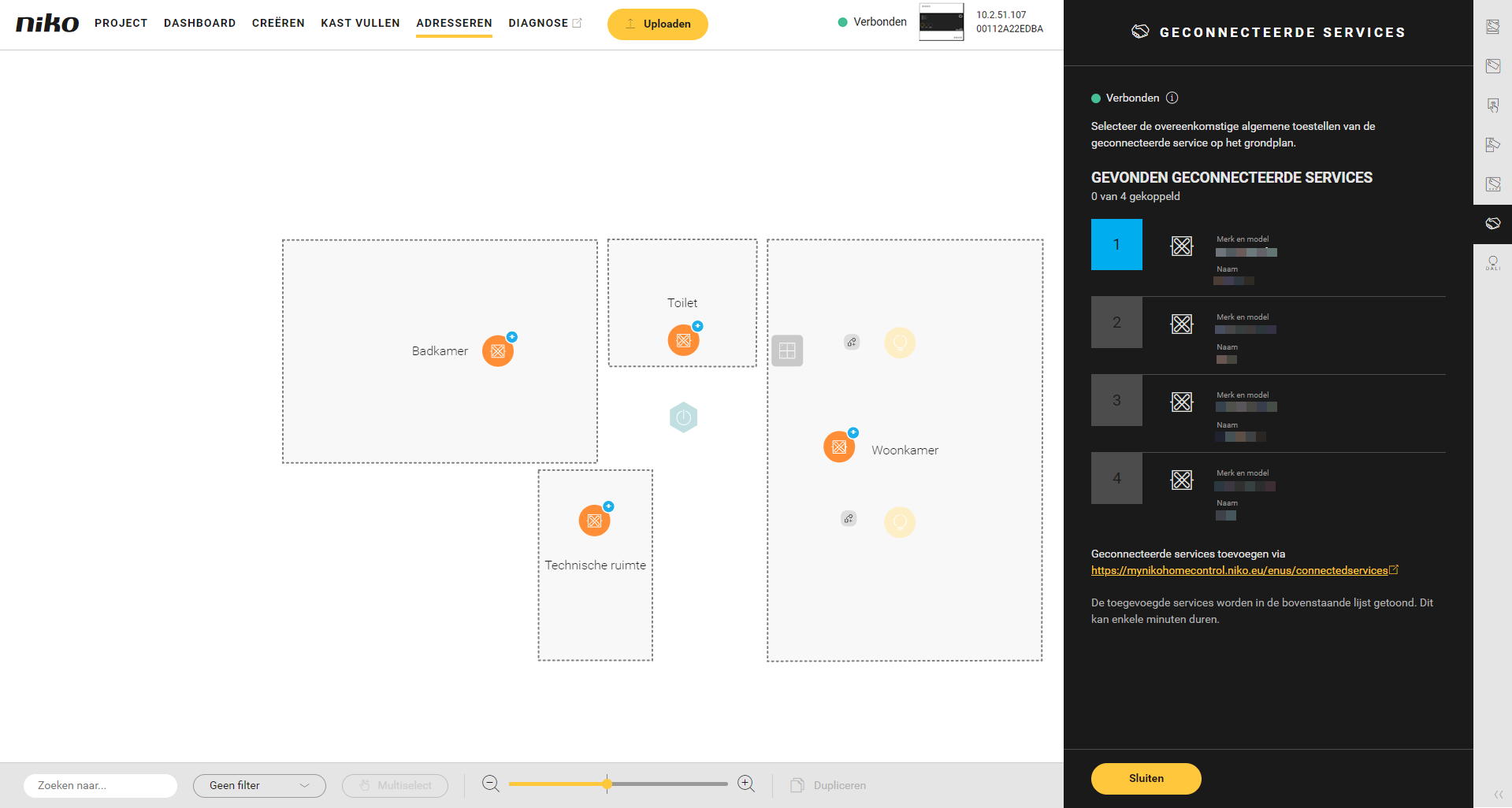 Alle partnertoestellen zijn geplaatst en verbonden met het lokale netwerk van je Niko Home Control installatie.