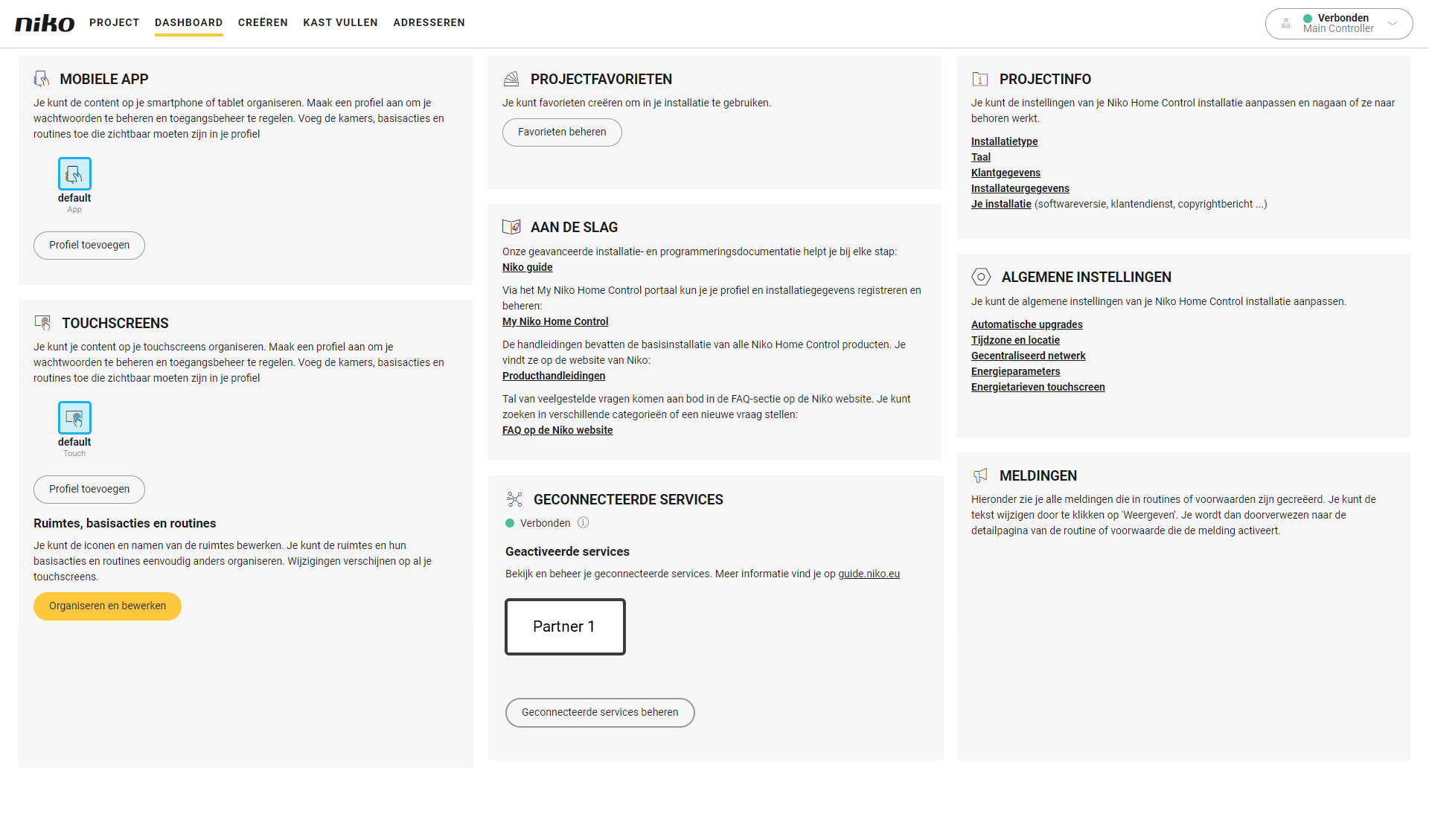 Je bevindt je in het overzichtsvenster Dashboard.