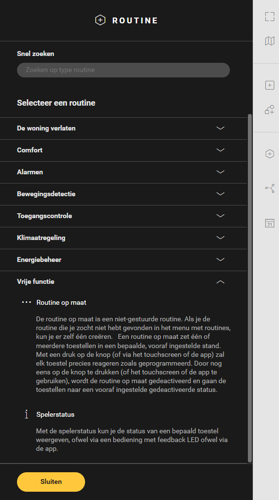 Gedrag Wat? Hoe? A Kies het toestel waarvan je de status wilt bekijken. Klik op het plusteken van het toestel dat je in de routine wilt opnemen.