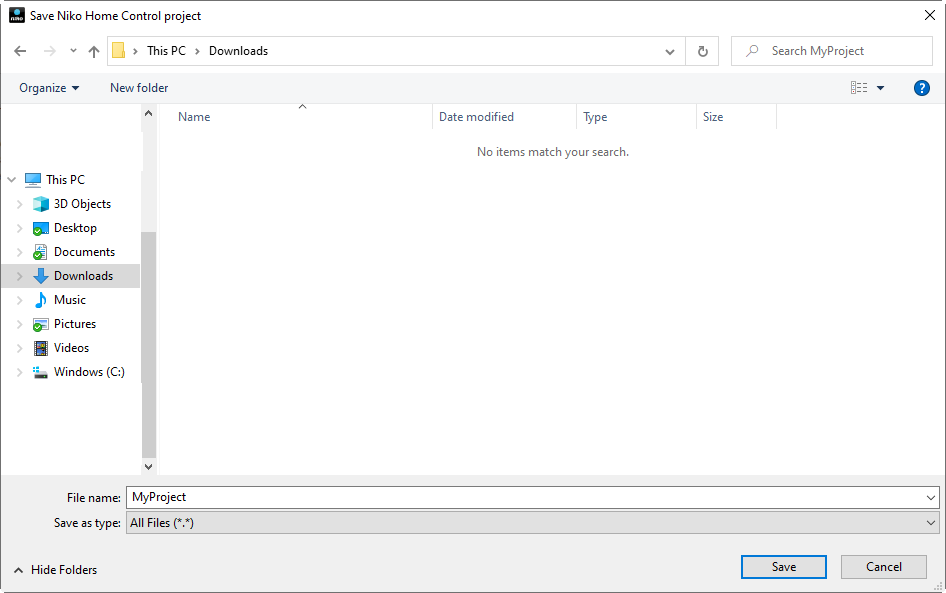 STAP 4: Download de configuratie van jouw Niko Home Control installatie naar jouw computer door "download installation to PC" te selecteren: