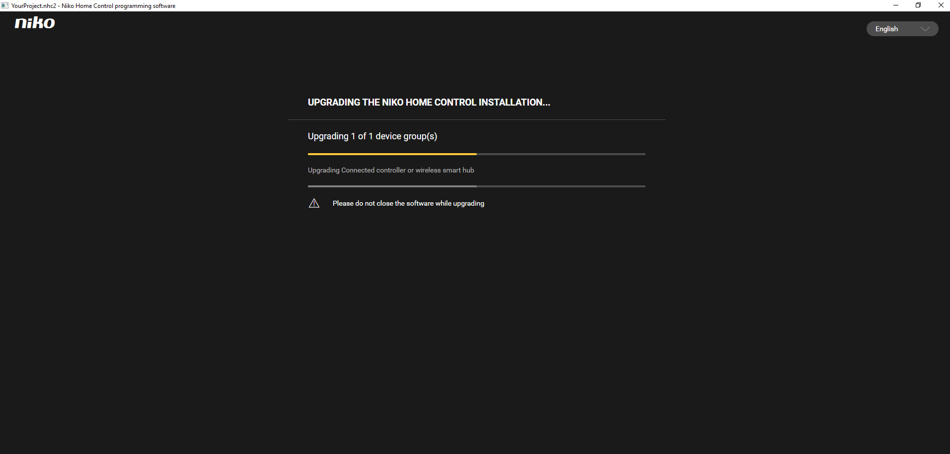 De programmatie software zal automatisch controleren of een upgrade van de Conneted Controller noodzakelijk is.