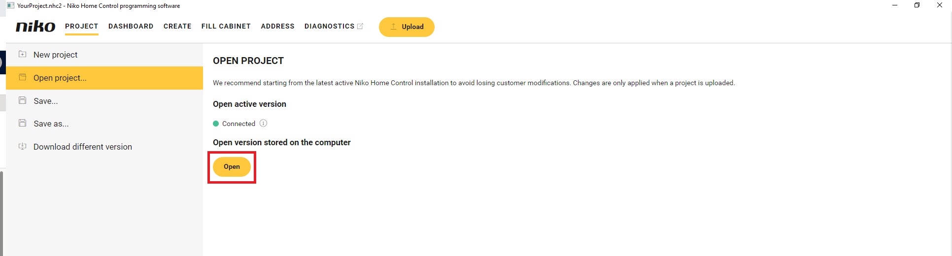 Het programmatie bestand zal hieronder verder benoemd worden als YourProject.nhc2.